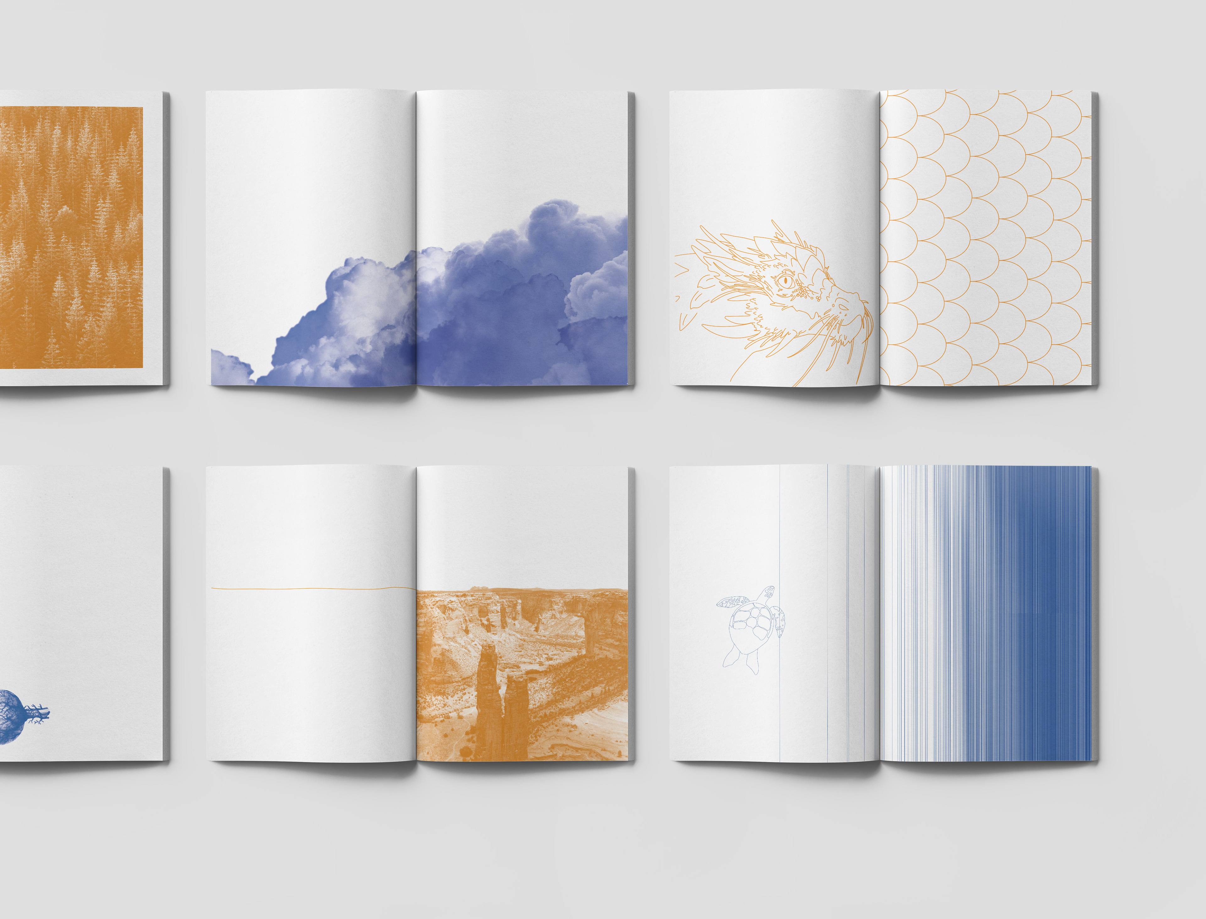 For instance, the Nothing — the story’s antagonist — is symbolised through the dominant presence of white space in the layout and by the gradual thinning of the pages as the book progresses. Similarly, the bond between Fantasia and the human world is rendered through two inks that run in parallel throughout the book, blue and yellow — a subtle echo of the colour pairing of the original German edition of the book, stitched quietly into every page.